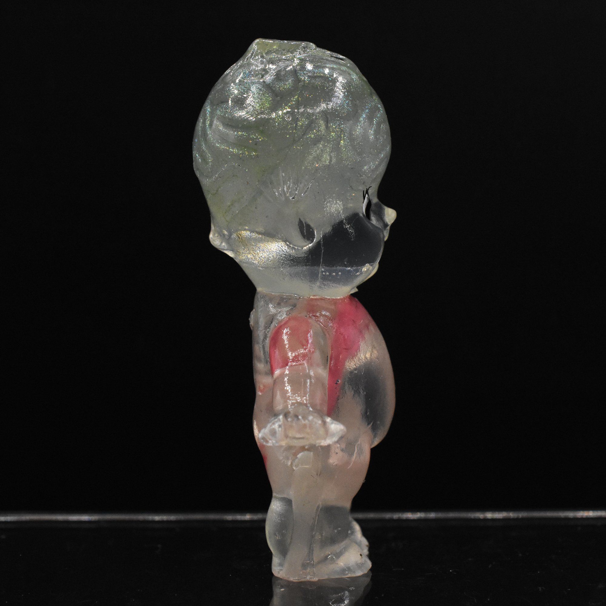 Disclaimer: These are handmade, custom 1/1 art toys - the eyes are vinyl / painted on and sealed with varnish to ensure lasting quality but please handle with care if you never want to unintentionally damage your Kilos Kewtie! Also limit sun exposure as clear resin or any vinyl figure will amber overtime when getting consistent and direct sun exposure or potentially reduce glow components overtime.