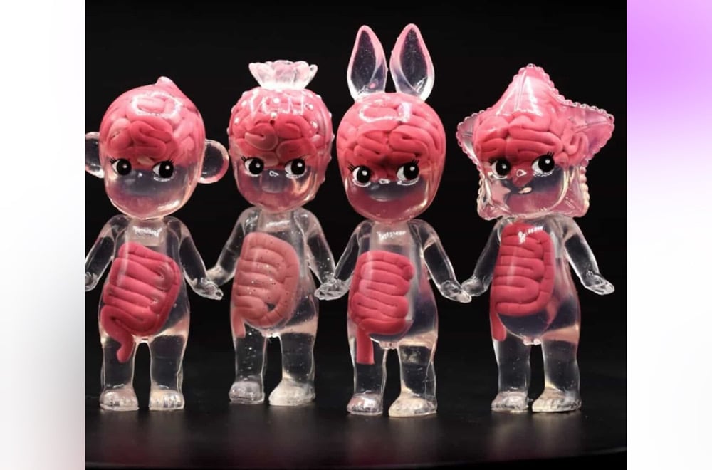 - Each Kewtie is one-of-a-kind – no two figures will ever be exactly the same. I can create a design that’s inspired by a previous one, but I can’t recreate the exact placement of every element. That’s part of what makes these special! You’re welcome to choose custom fillers, but please note that I don’t have control over where they land inside the resin — things can shift while the piece is curing. That unpredictability is part of the magic and uniqueness of each piece. Anatomy kewpies brains and intestines are hand sculpted. If something is very clearly misplaced in the casting i will always recast and be sure i’m personally delivering what i feel to be my best work !)